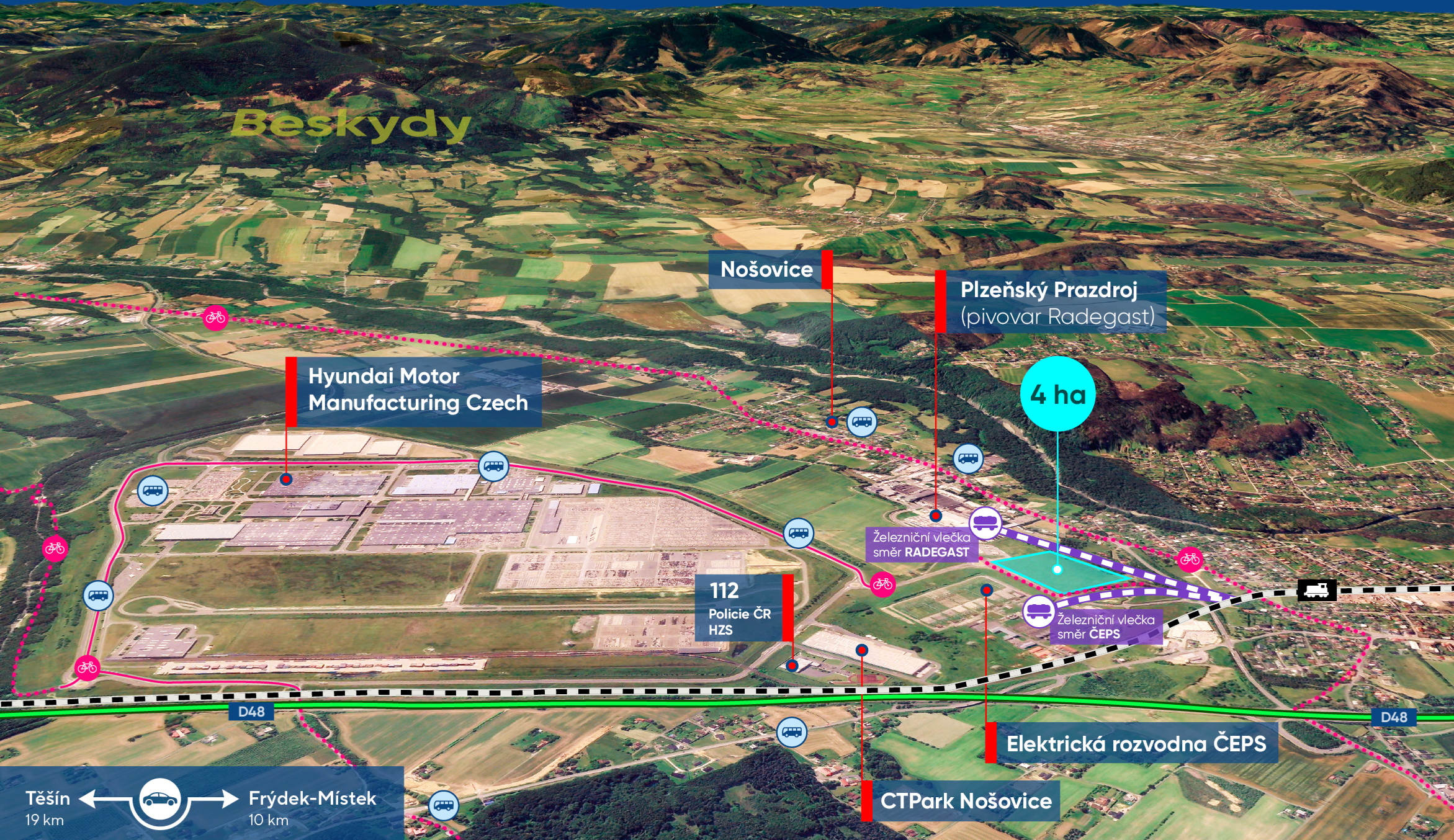 - v bezprostředním okolí: Hyundai Motor Manufacturing Czech, CTP, Radegast