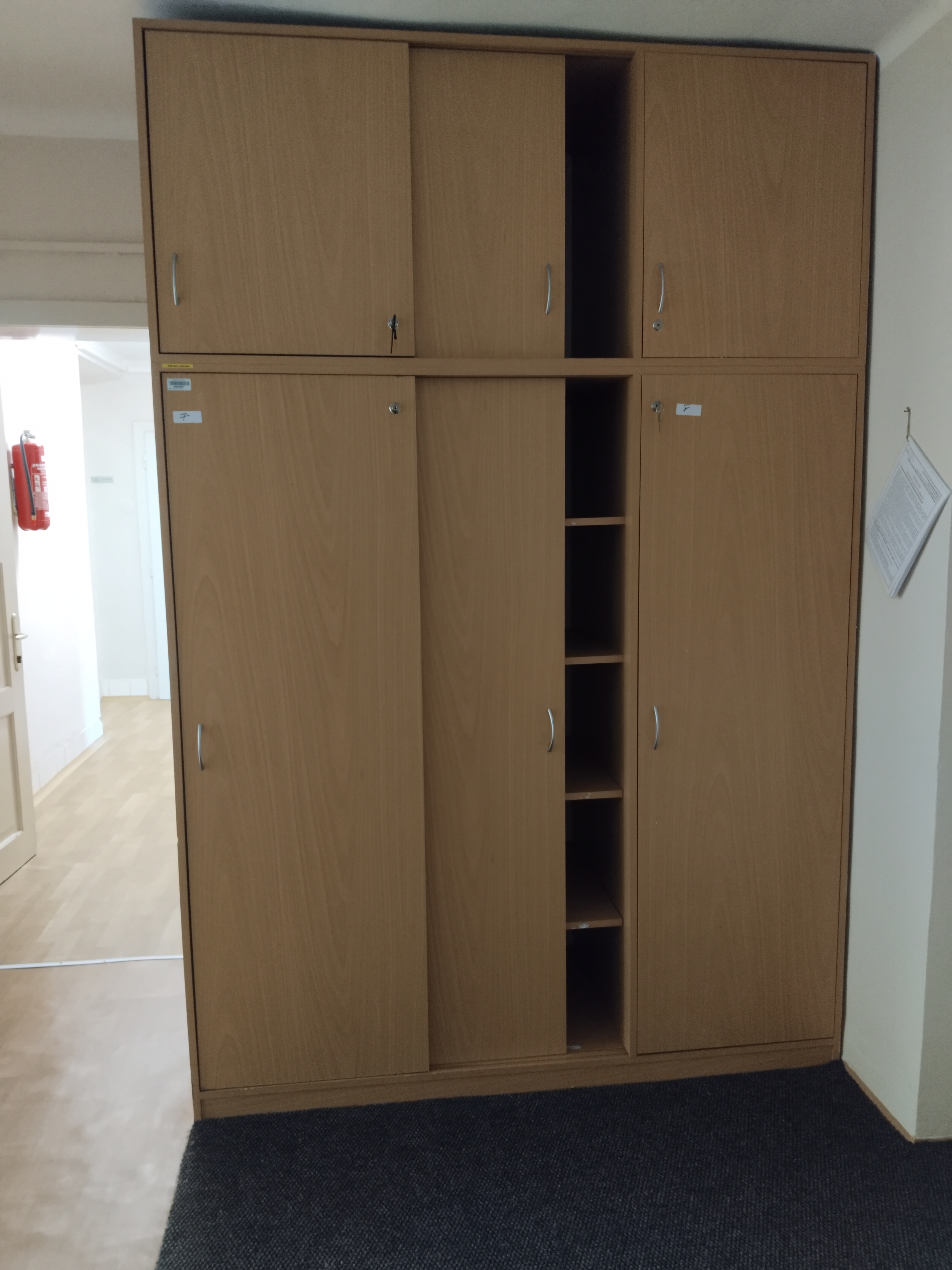 Popis: Šatní skříň s nástavcem, 3 x dveře, z toho 2 x posuvné.