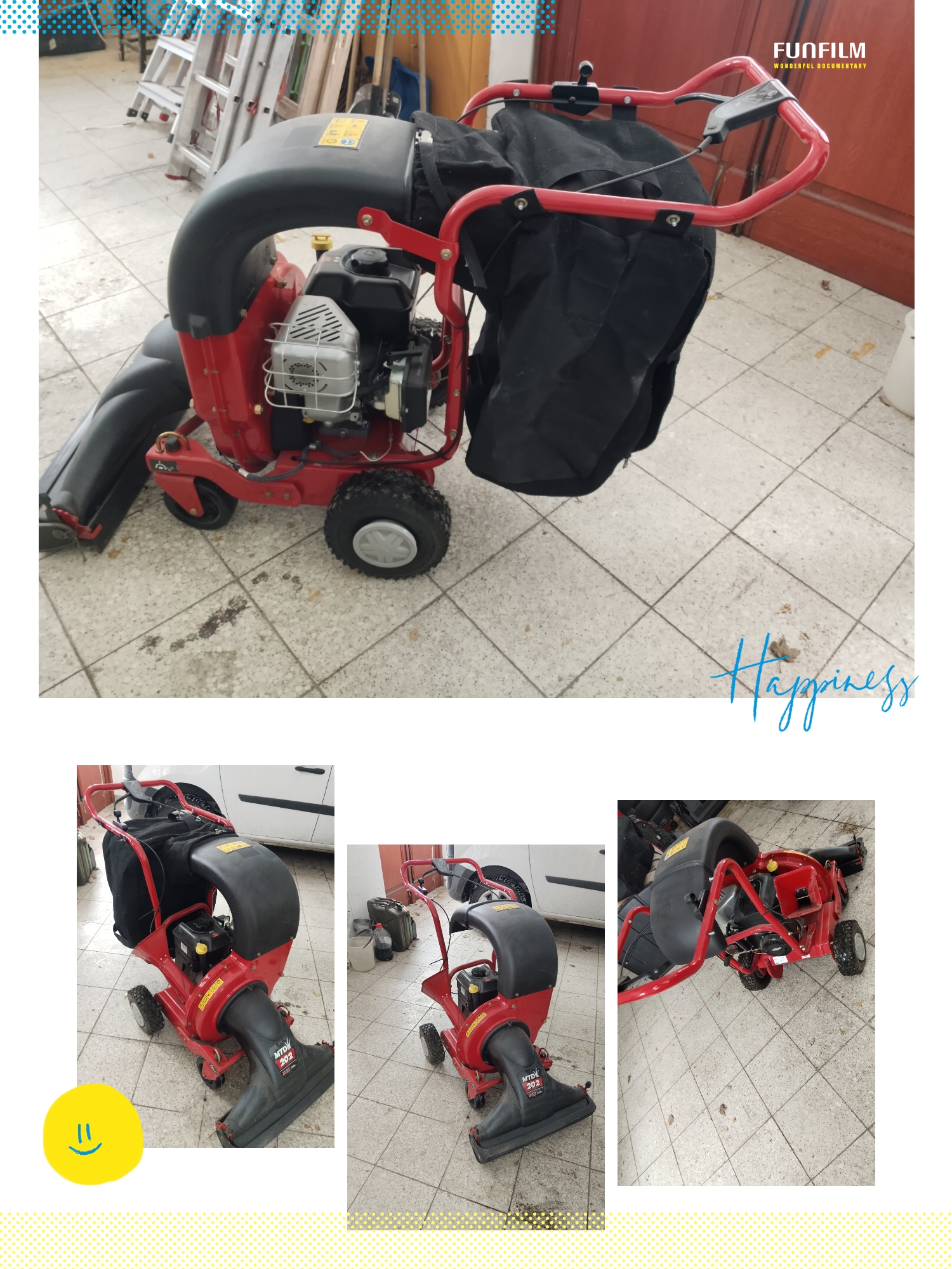 Popis: Benzínový zahradní vysavač listí se hodí pro veškeré úklidové práce na zahradě a v parcích. Přeměna na foukač je jednoduchá a bez přestavby přístroje. Odstraní spadané listí a větvičky spolu s dalším odpadem. Komfort práce zajišťuje vlastní pohon kol, vysavač má vysoký výkon díky pohyblivým drtícím nožům z litiny a tuhým štípacím nožům. Zahradní vysavač byl málo používaný. Pořízení - rok 2015.