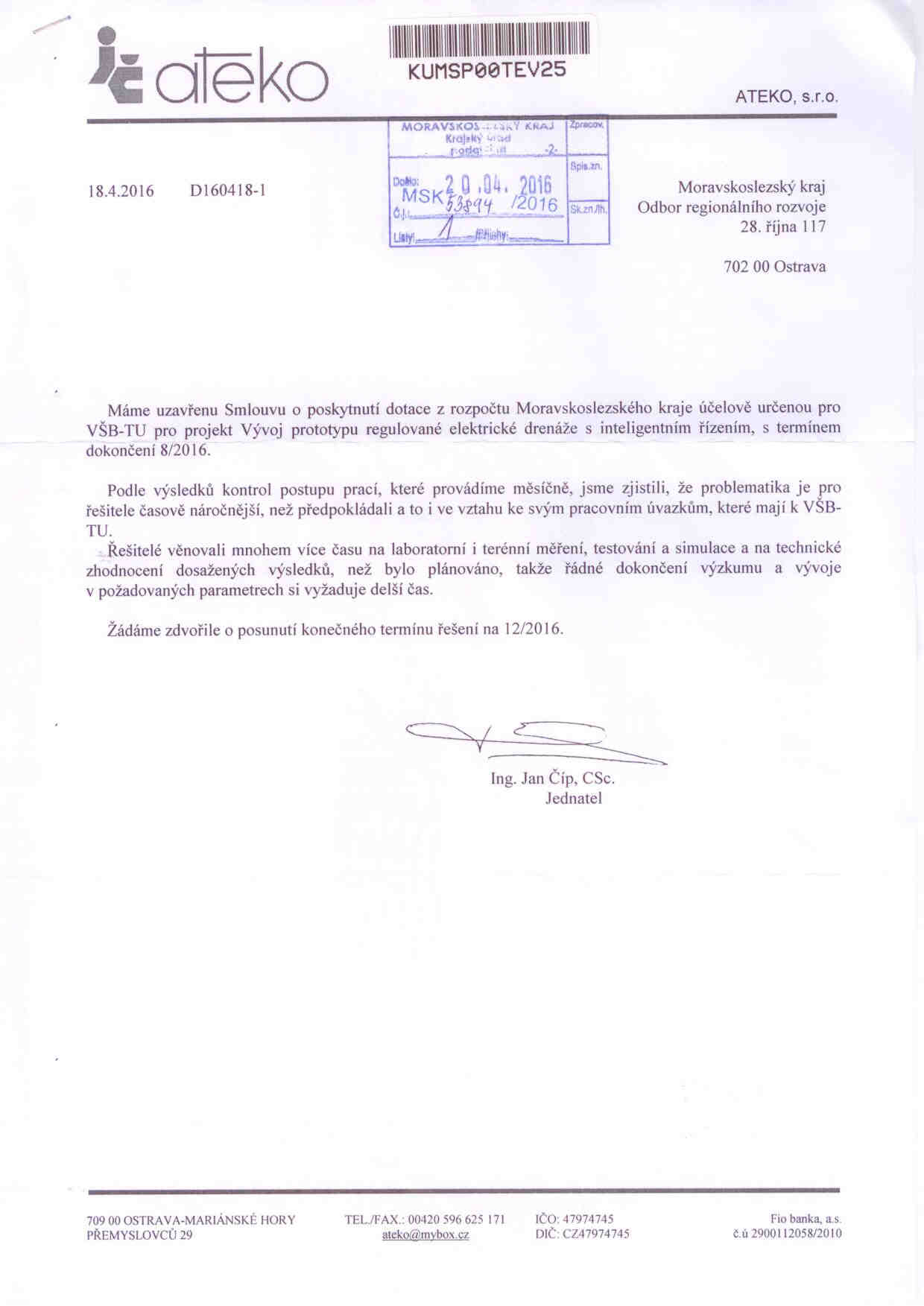 - příloha č. 1 – Žádost České republiky - Hasičského záchranného sboru Moravskoslezského kraje o prodloužení období realizace projektu ze dne 12. 5. 2016 (formát PDF, velikost 256 kB)