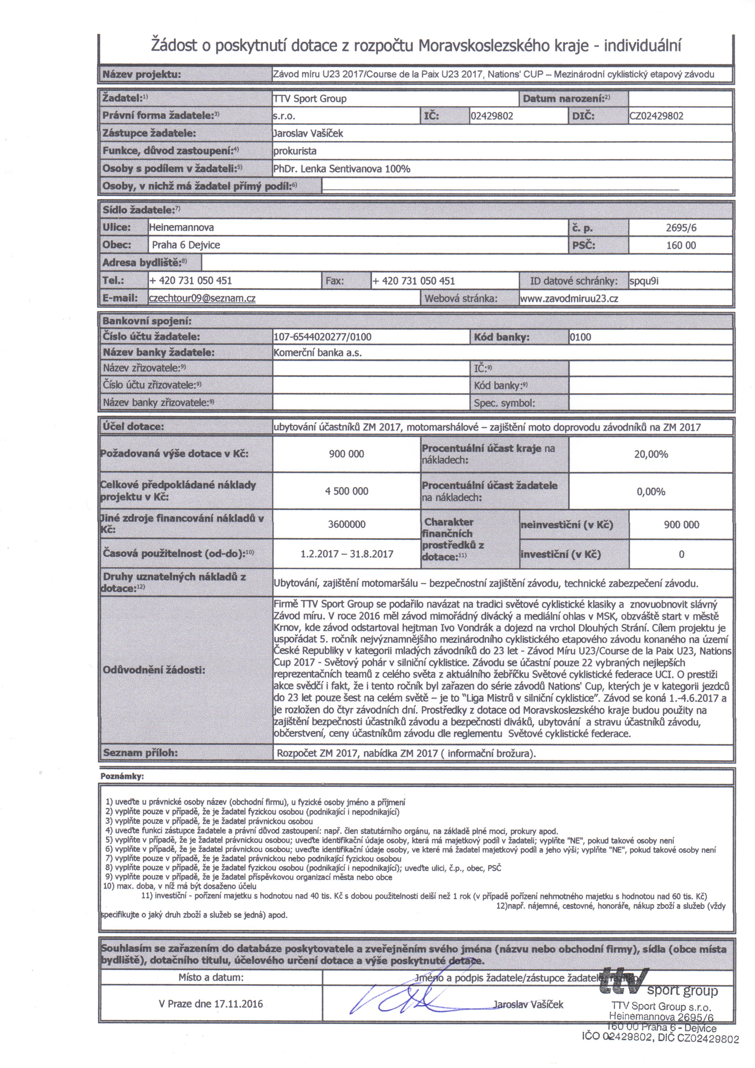 11/10 – Žádost o poskytnutí finančních prostředků v oblasti podpory sportu