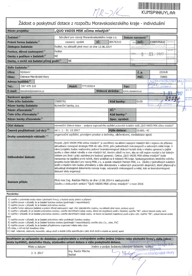- příloha č. 2 – Návrh smlouvy o poskytnutí dotace z rozpočtu MSK (formát MS Word, velikost 113 kB)