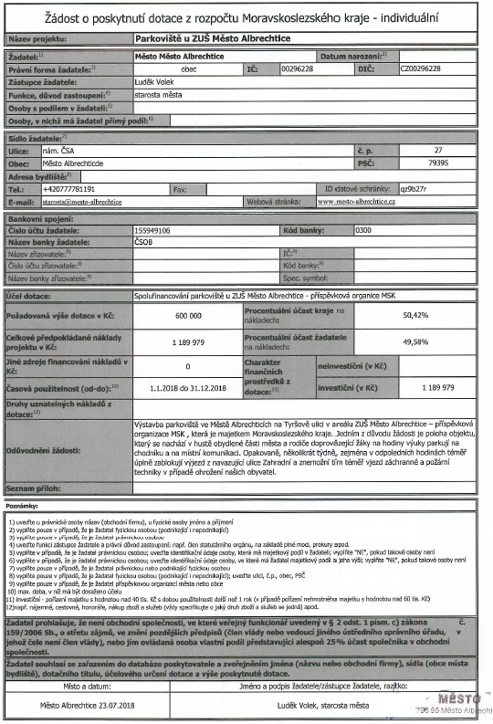 - příloha č. 2 – Žádost o poskytnutí dotace Obec Hošťálkovy (formát PDF, velikost 1 MB)