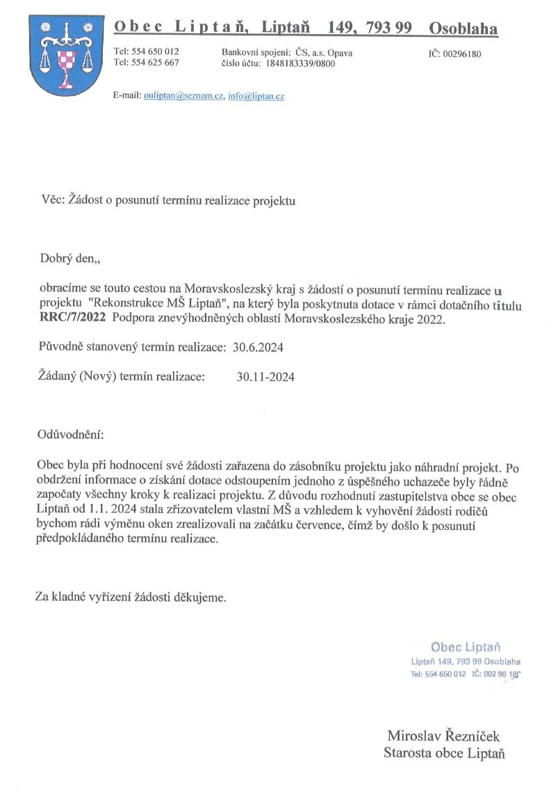 - příloha č. 2 – Žádost obce Lichnov ze dne 30. 9. 2024, o změnu smlouvy o poskytnutí dotace z rozpočtu Moravskoslezského kraje, ev. č. 01471/2023/ŽPZ (formát PDF, velikost 170 kB)